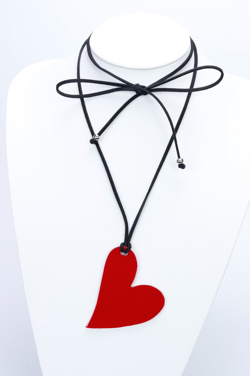 Notă modernă, romantică, edgy. Acest choker șic prezintă un pandantiv inimă izbitor din piele lăcuită cu luciu intens, îmbinând perfect stilul contemporan îndrăzneț cu un simbol atemporal al iubirii.