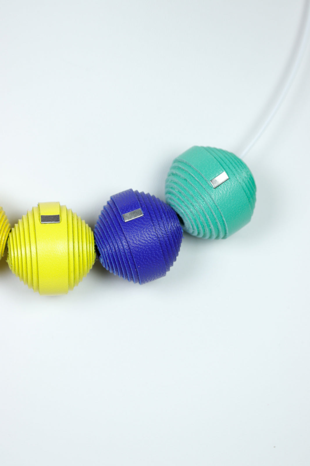 Spiritul insulei Capri. Inspirat de culorile vibrante ale insulei italiene, acest set lucrat manual prezintă un colier unic cu mărgele din piele și cercei asortați pentru un look de energie mediteraneană pură.
