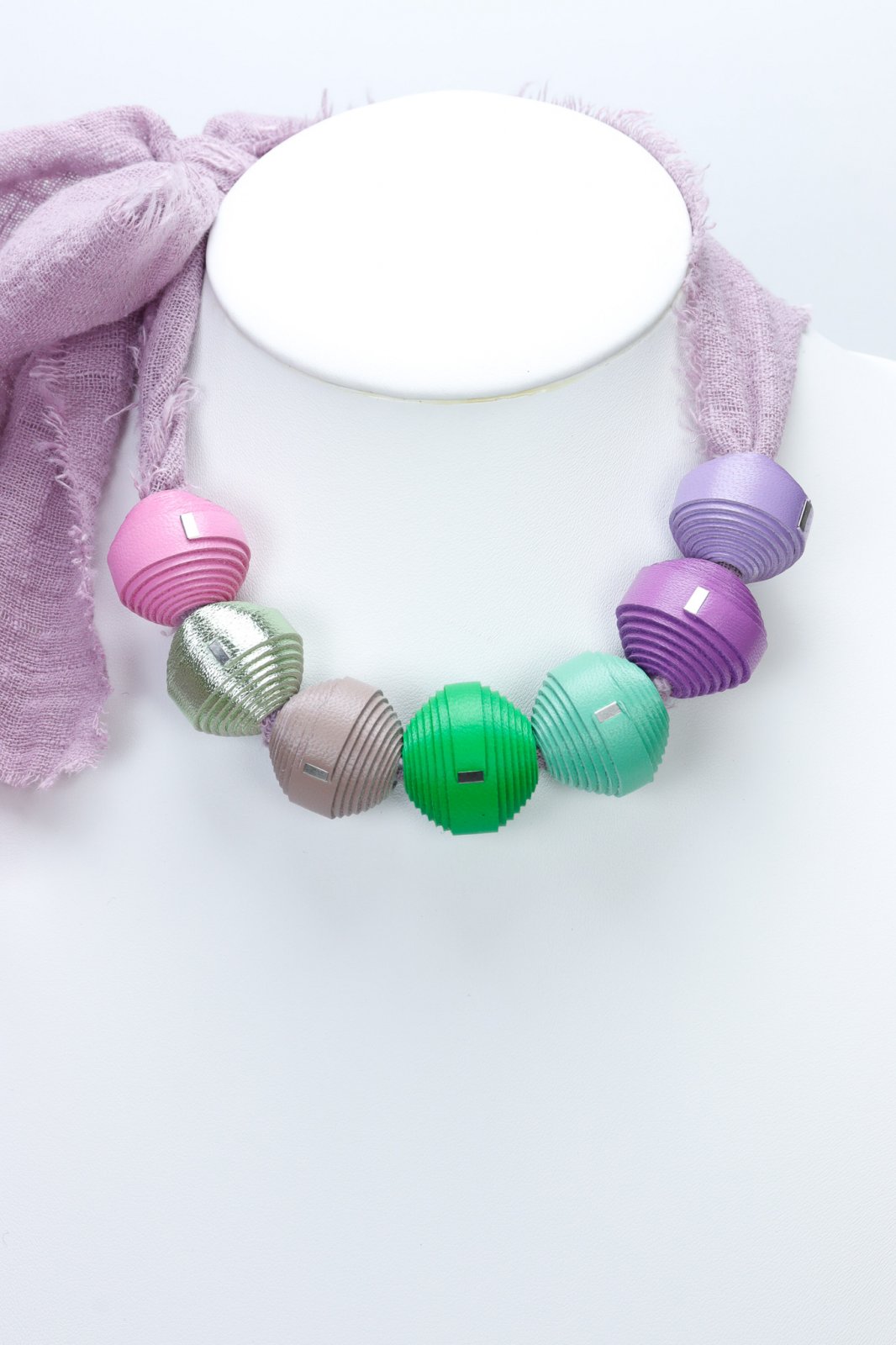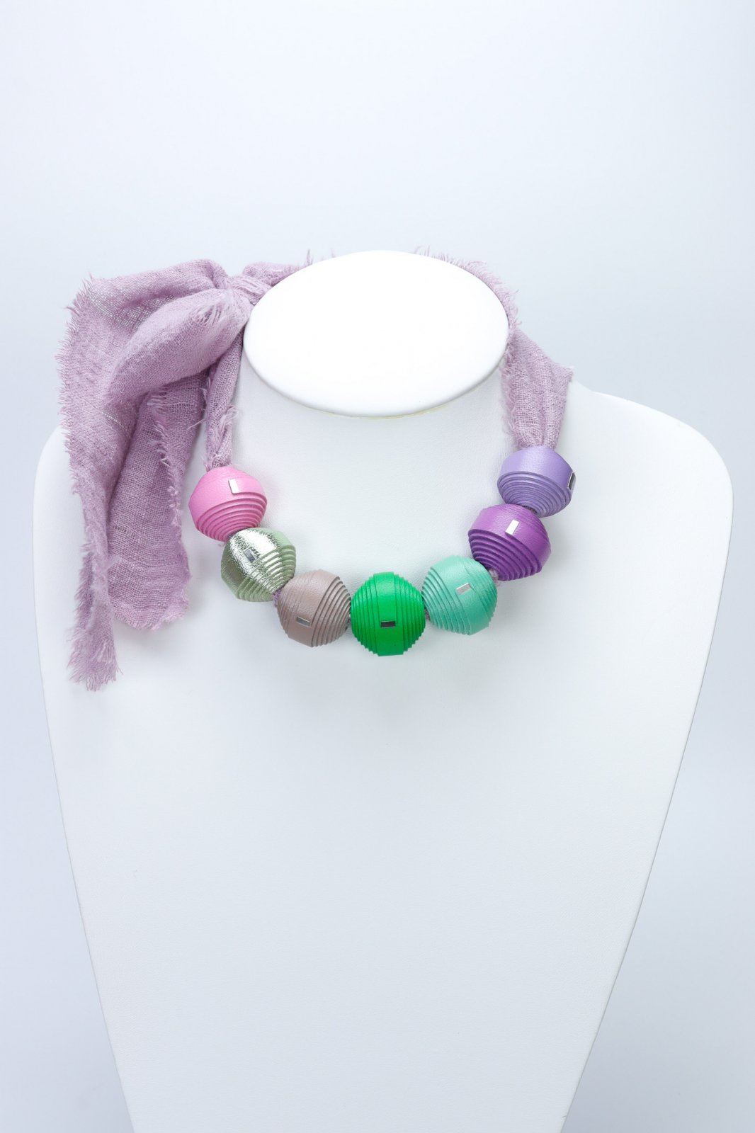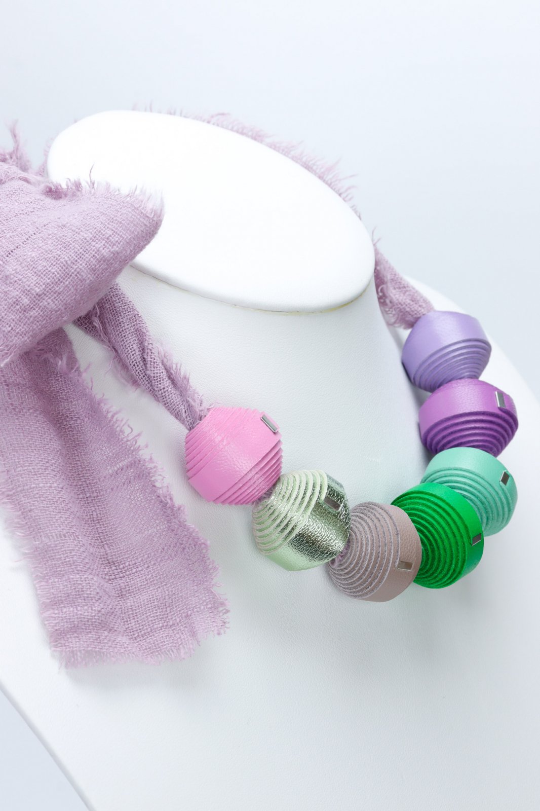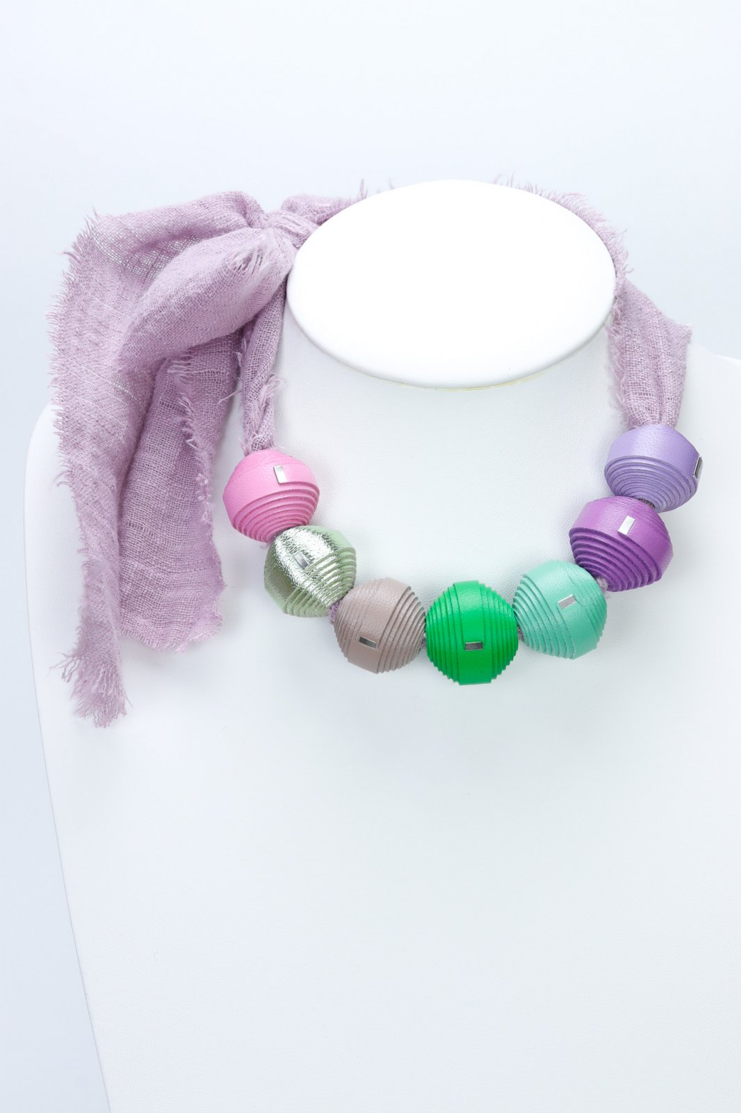 "Experimentează o fuziune unică de materiale cu acest colier Leatherbonbon așezat pe o bază stilată din pânză. Acest design inovator combină farmecul artizanal al mărgelelor din piele lucrate manual cu senzația casual, pământie, a unui șnur rezistent din pânză. Rezultatul este un accesoriu contemporan și versatil, perfect pentru a adăuga o notă de stil modern, organic, look-ului tău de zi cu zi.Caracteristici: