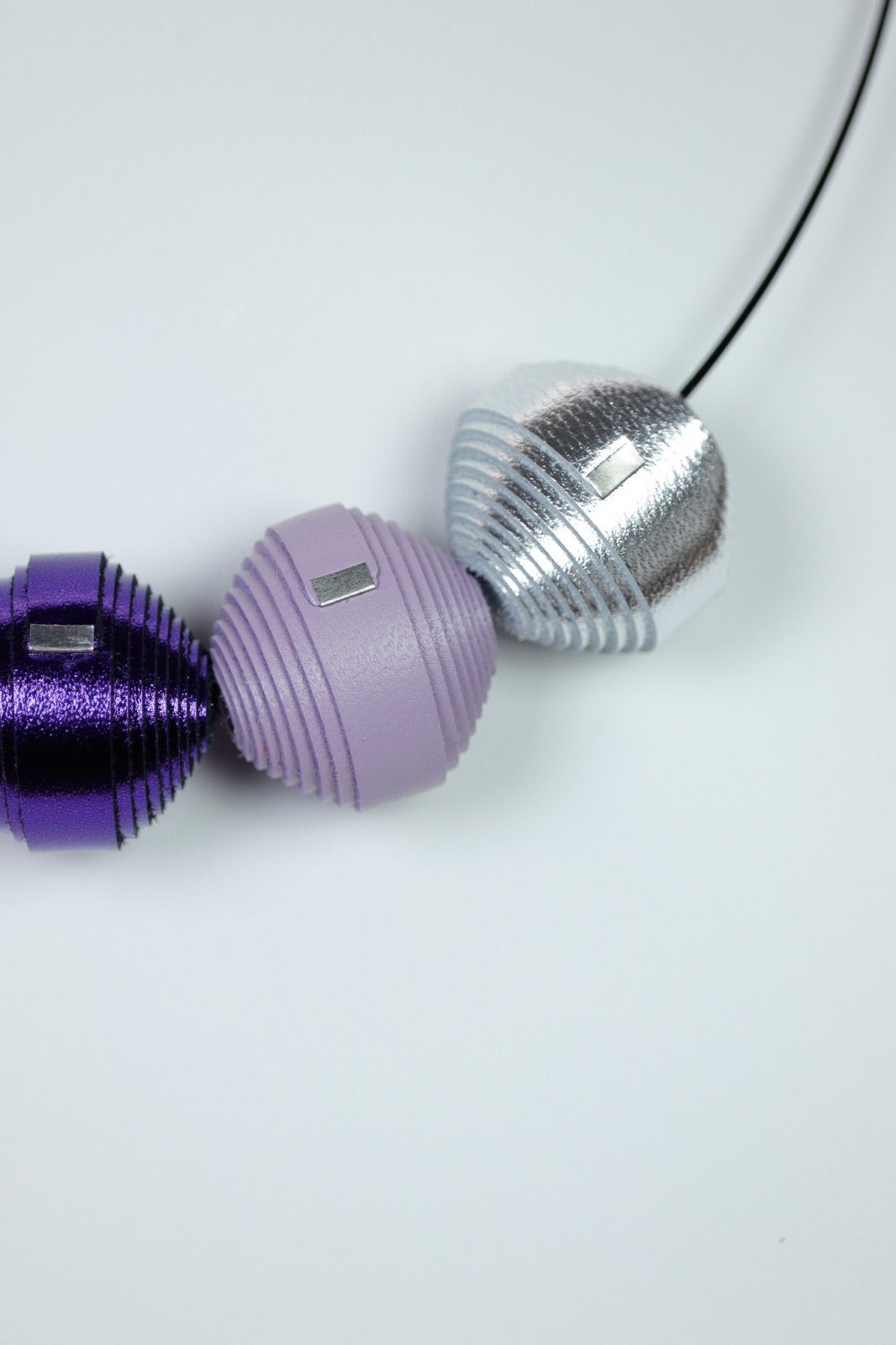 Colier Leatherbonbon din piele naturală cu mărgele texturate în nuanțe pastelate și vibrante. Un accesoriu jucăuș care aduce un plus de culoare și energie oricărei ținute.