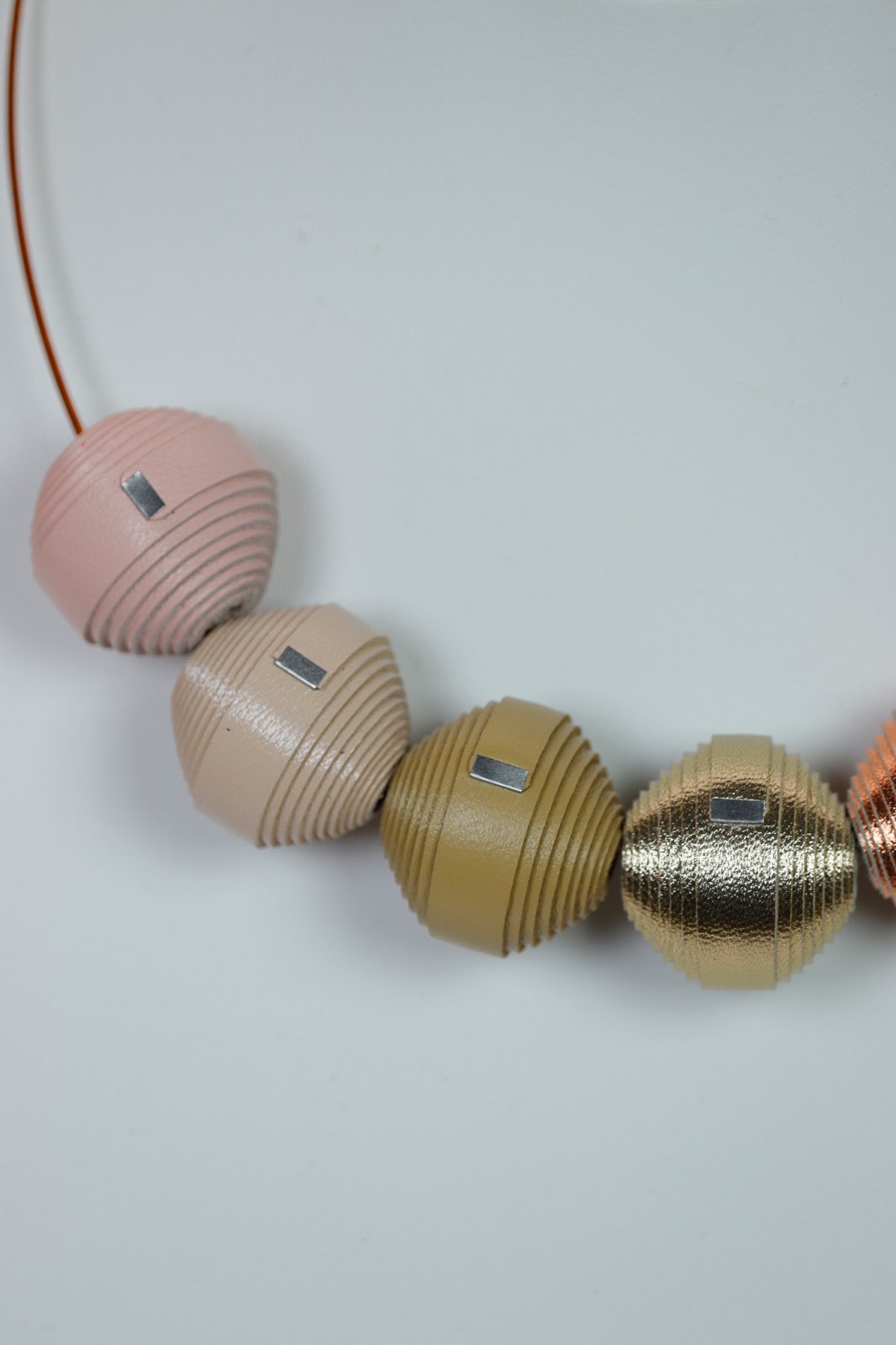 Eleganță subtilă, posibilități nelimitate. Acest Premium Box oferă 7 mărgele din piele în tonuri sofisticate nude și metalice, plus 2 baze de colier. Creează-ți propriile look-uri rafinate, minimaliste sau statement, fără efort.
