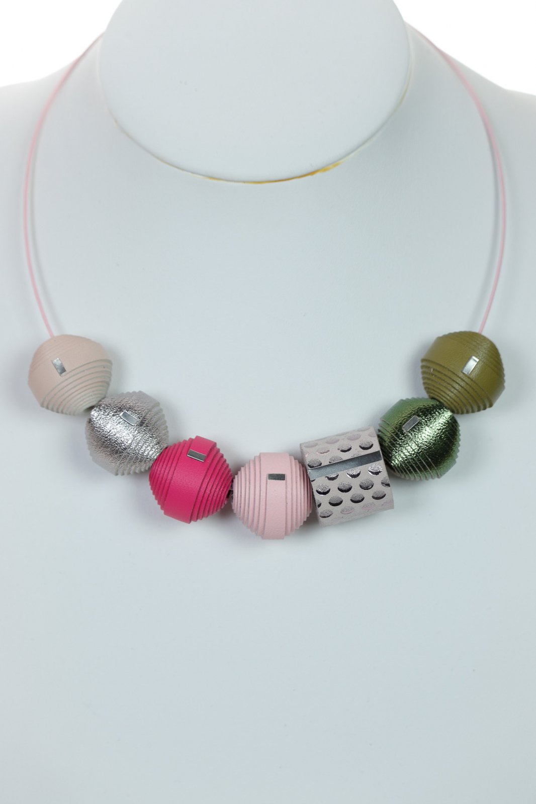 Din colecția Premium Box, acest set modern și versatil combină șase mărgele Leatherbonbon cu o mărgea Marshmallow unică. Paleta de culori îmbină nuanțe delicate de roz cu accente metalice și verzi, oferind posibilitatea de a crea coliere statement pentru orice ocazie.