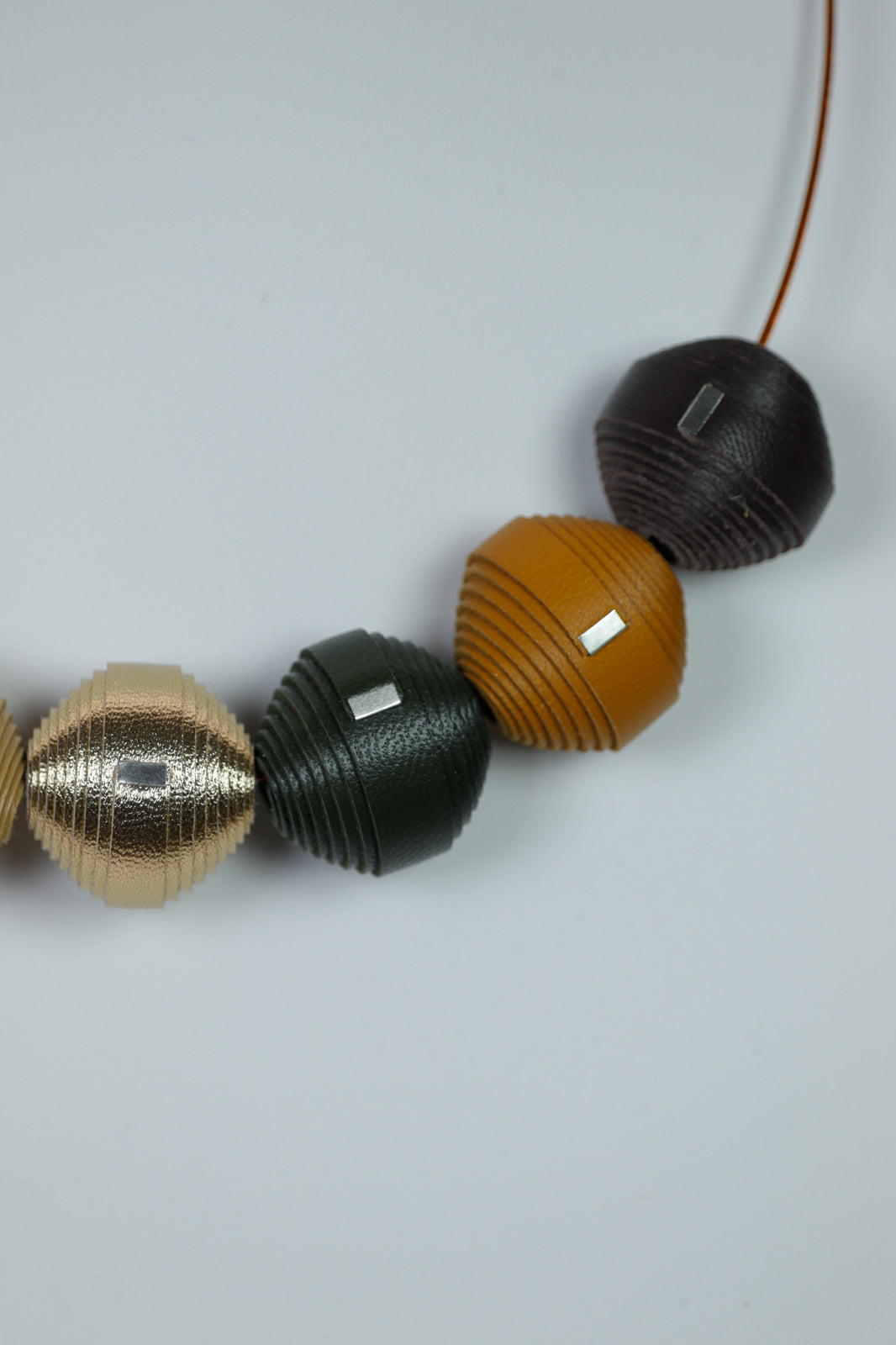 Eleganță pământie, stil infinit. Acest Premium Box include 7 mărgele din piele în tonuri bogate de maro, auriu și verde, plus 3 baze de colier. Creează și recreează look-uri sofisticate pentru orice ocazie.