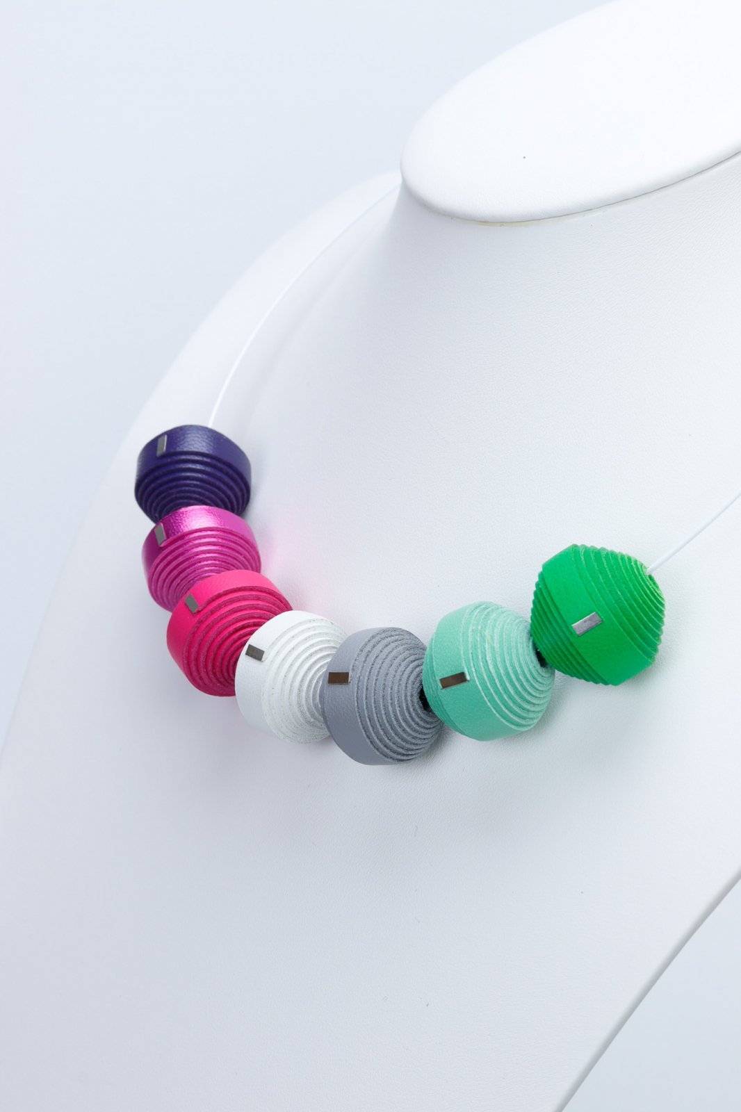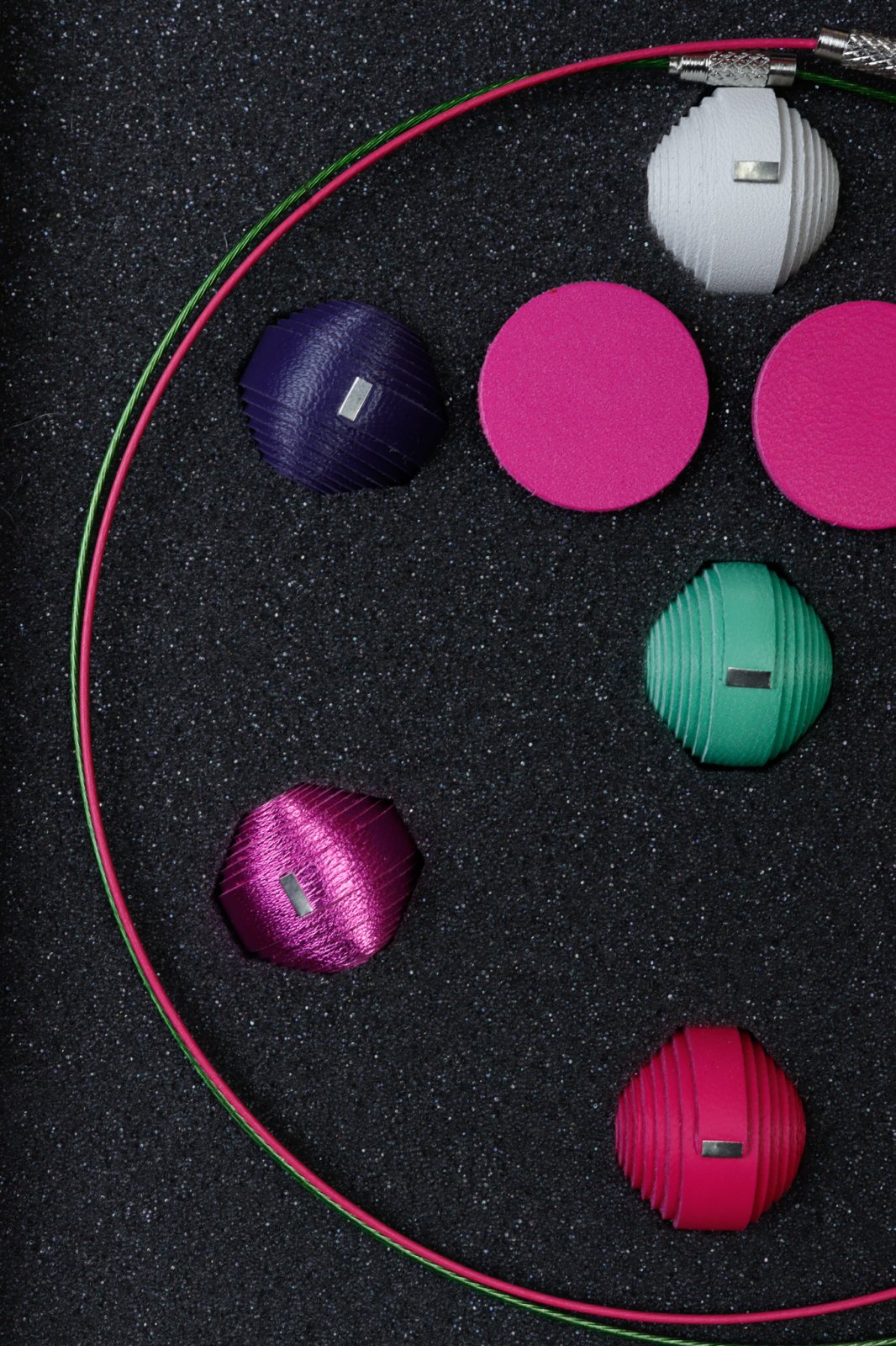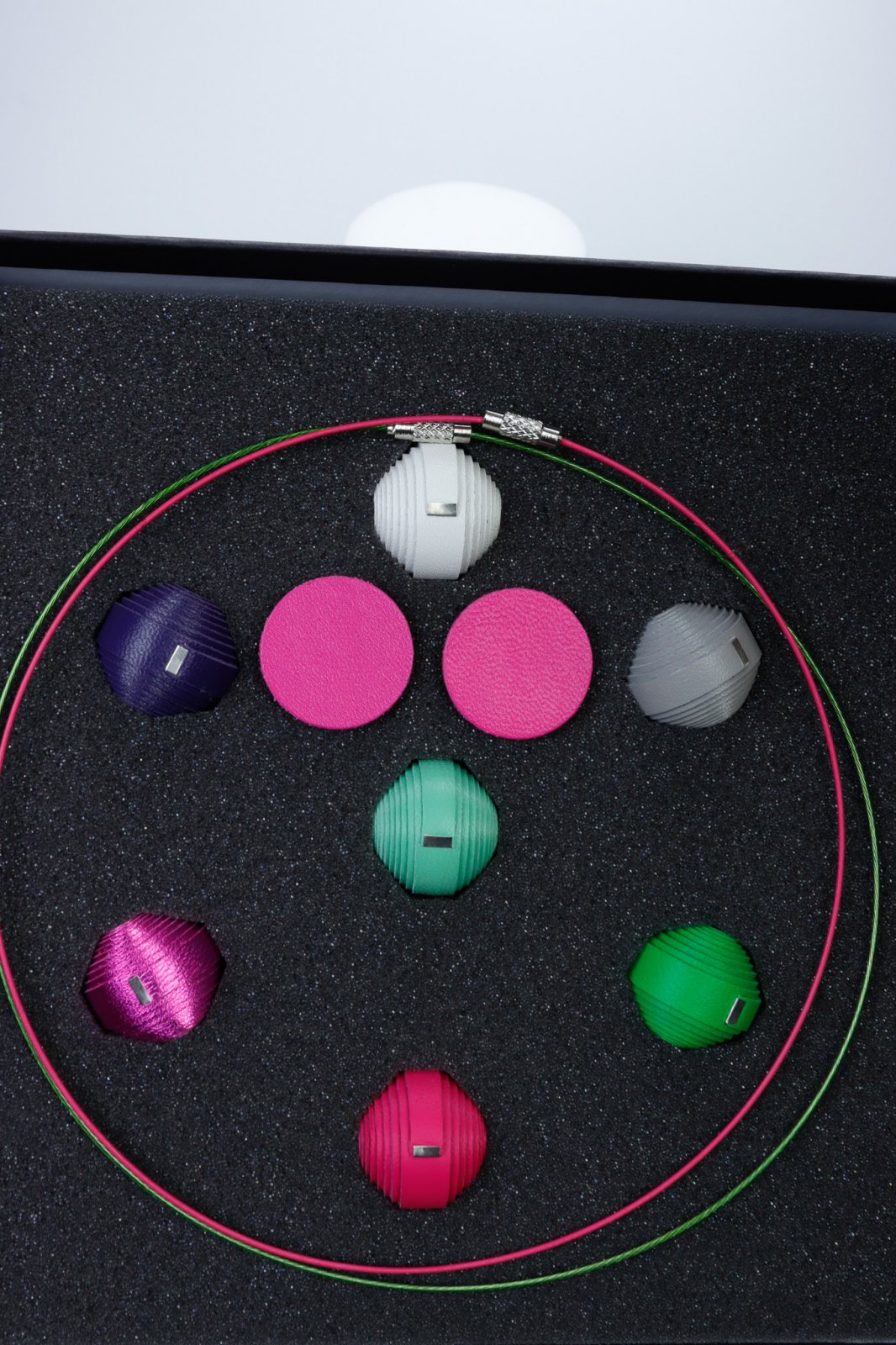 • Conținut: O selecție de mărgele din piele, baze de colier și o pereche de cercei.