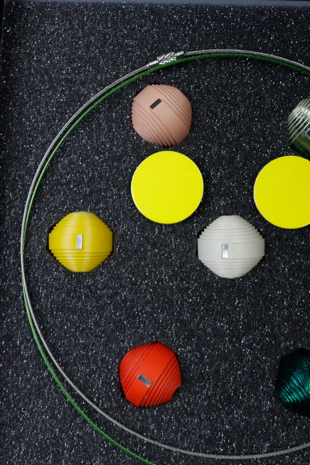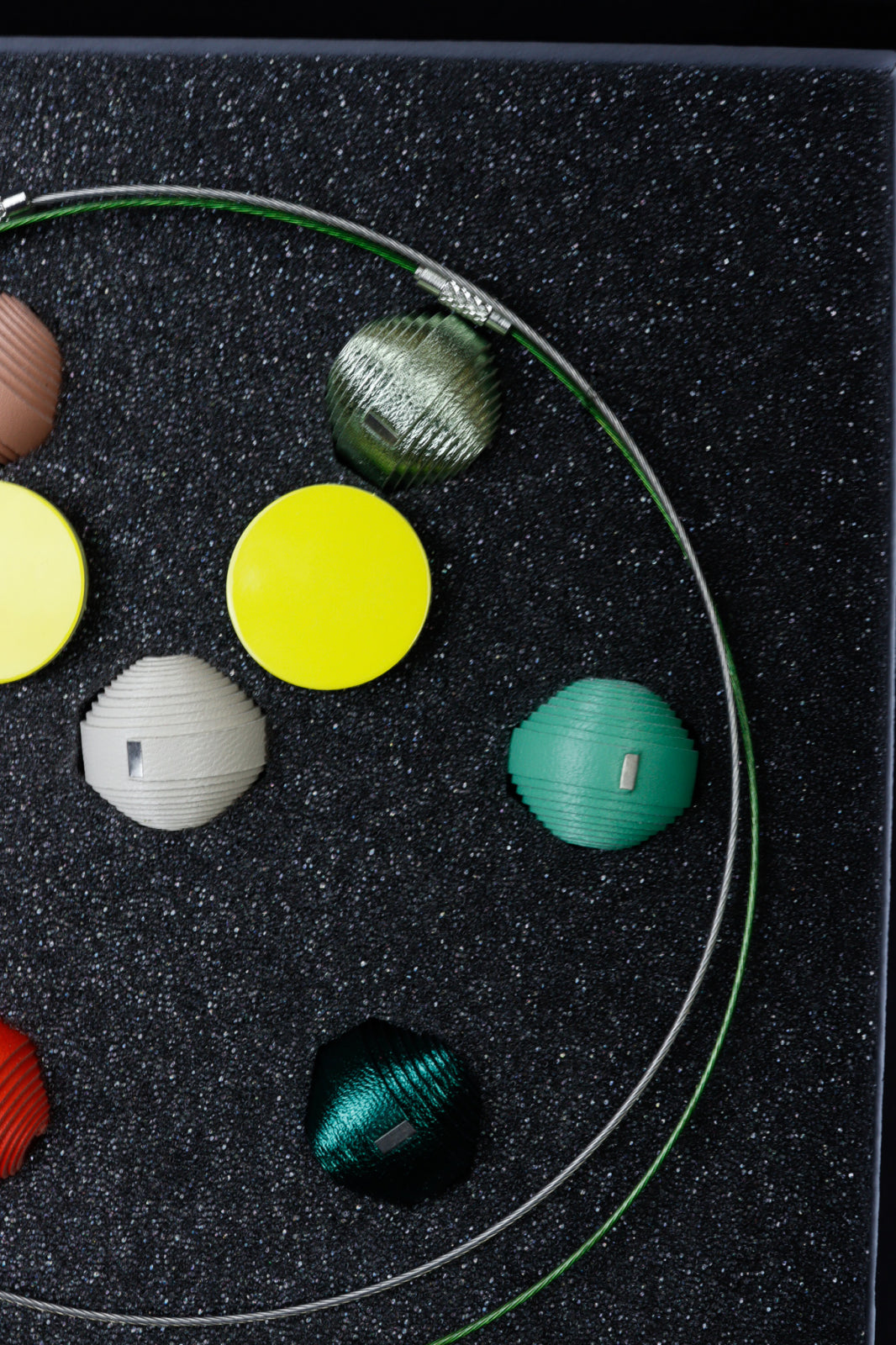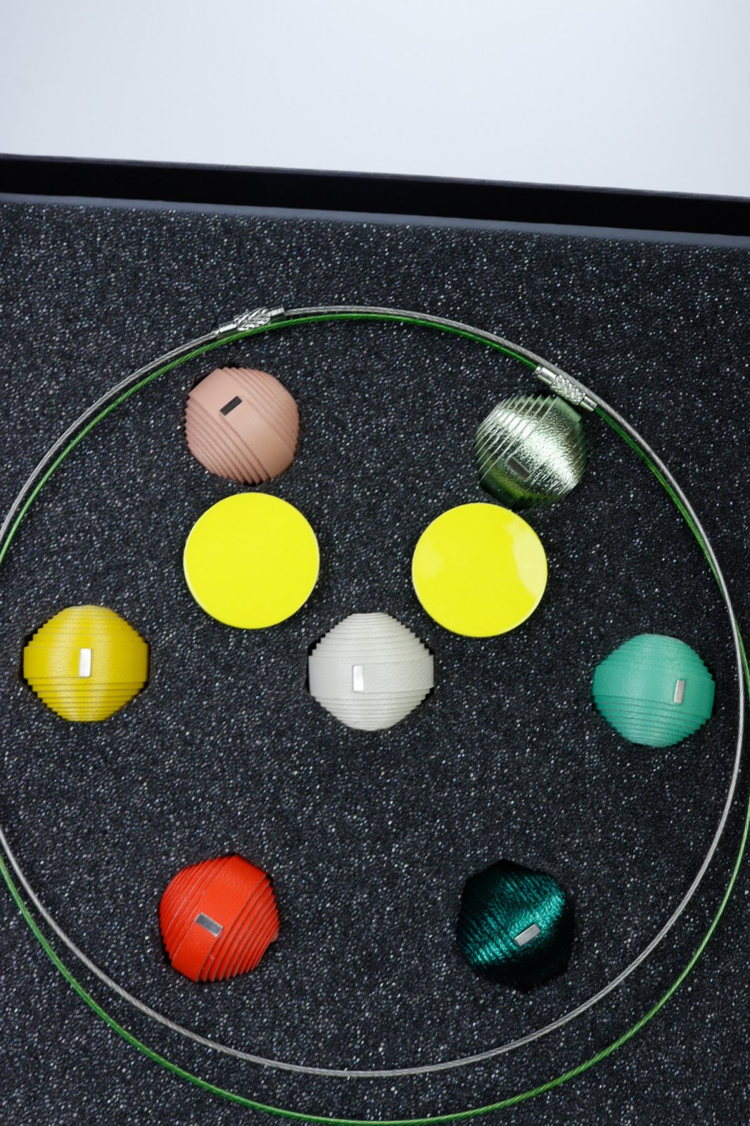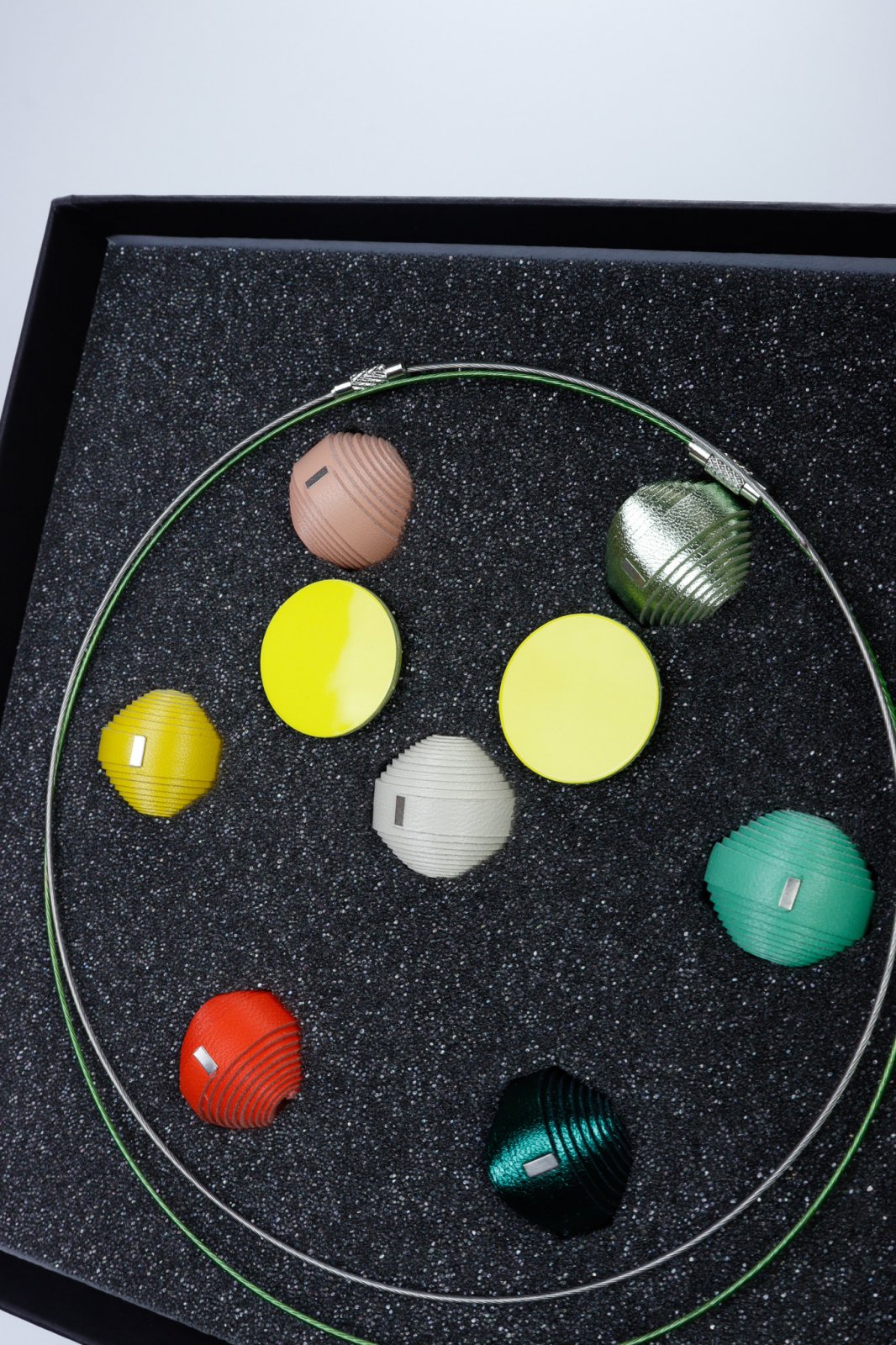 Experiența supremă a bijuteriilor personalizabile. Acest set premium prezintă un concept unic mix-and-match cu 7 mărgele din piele lucrate manual și două baze de colier (una din oțel inoxidabil auriu, una din sârmă siliconică). Deșurubează capătul pentru a crea combinații nelimitate. Setul este completat cu o pereche de cercei din piele asortați, totul fiind prezentat într-o cutie elegantă, fiind cadoul perfect pentru persoana creativă și stilată.