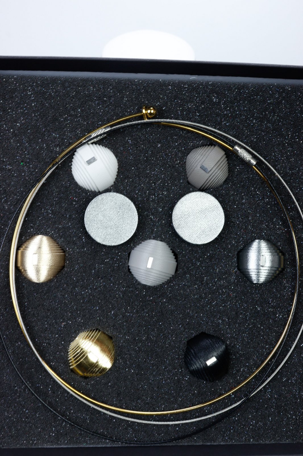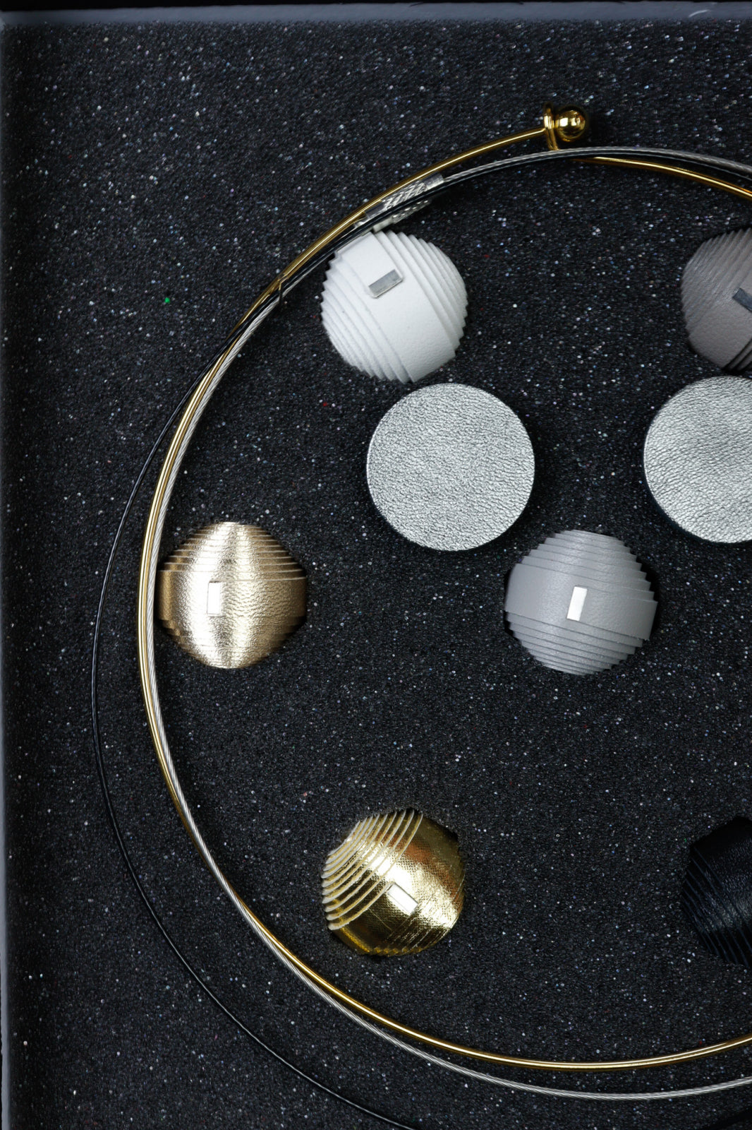 Experiența supremă a bijuteriilor personalizabile. Acest set premium prezintă un concept unic mix-and-match cu 7 mărgele din piele lucrate manual și două baze de colier (una din oțel inoxidabil auriu, una din sârmă siliconică). Deșurubează capătul pentru a crea combinații nelimitate. Setul este completat cu o pereche de cercei din piele asortați, totul fiind prezentat într-o cutie elegantă, fiind cadoul perfect pentru persoana creativă și stilată.