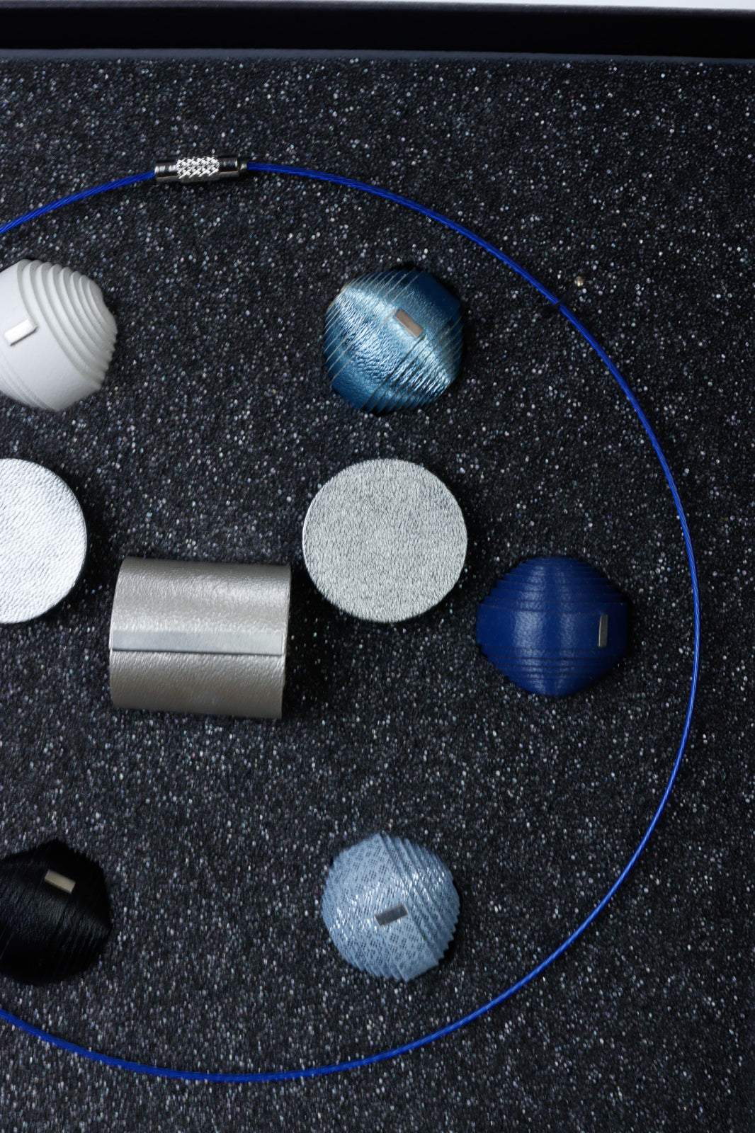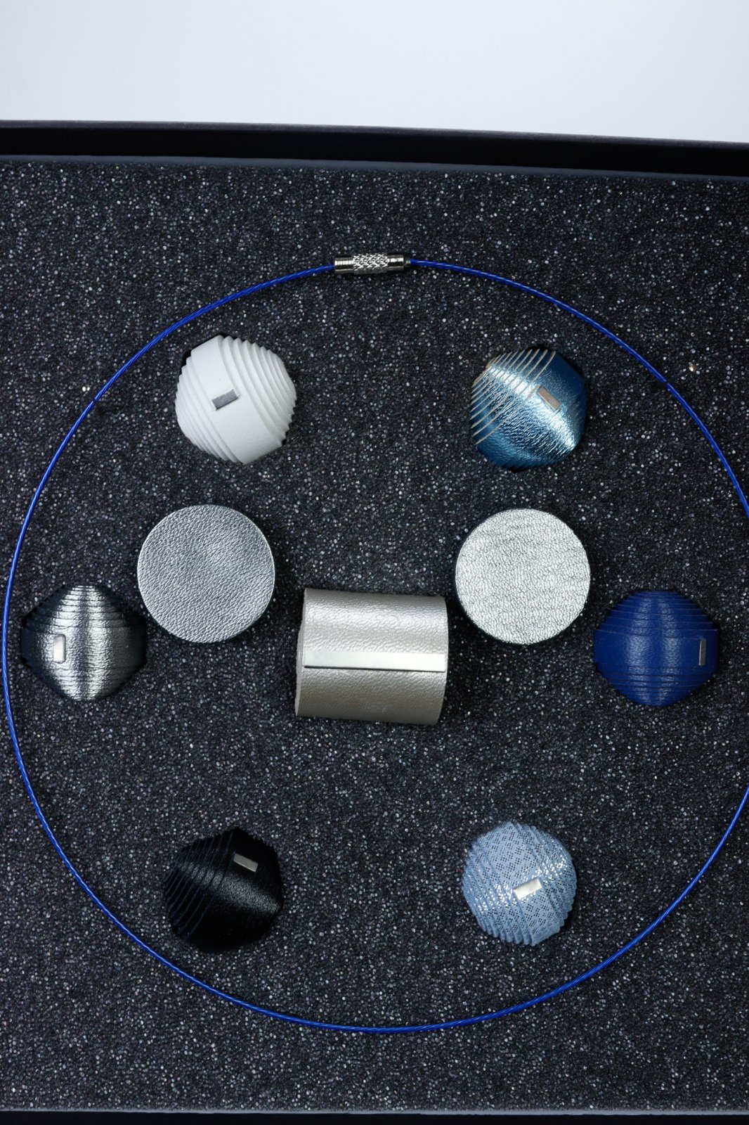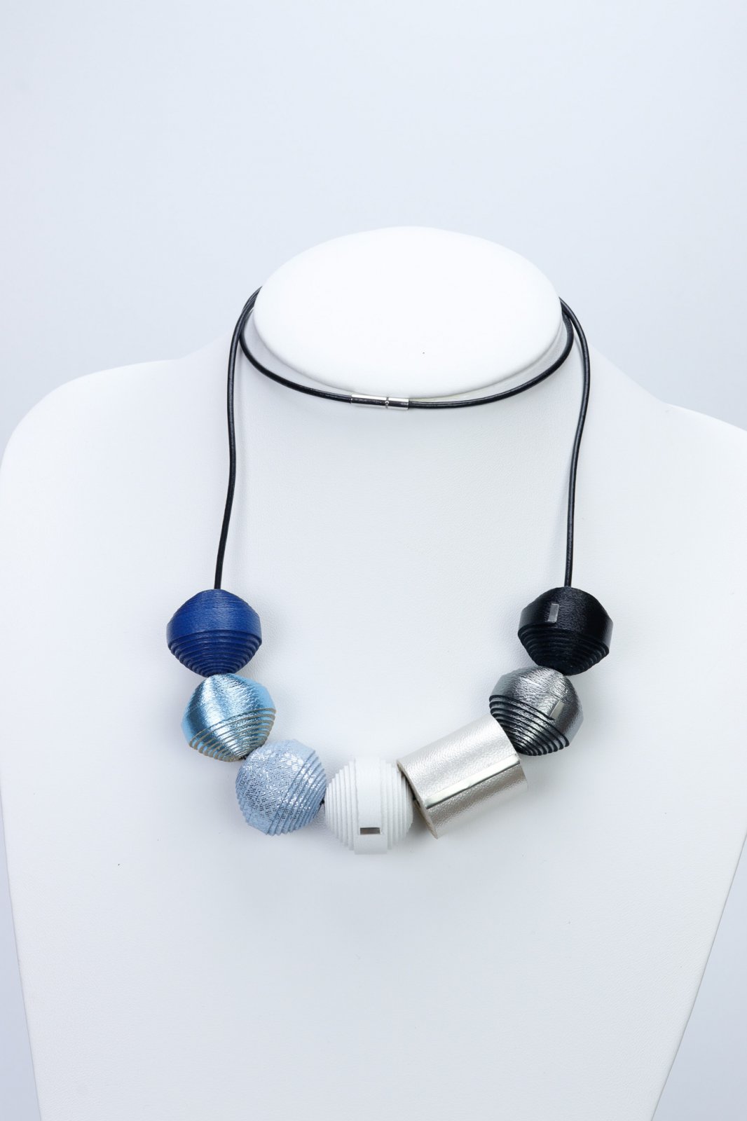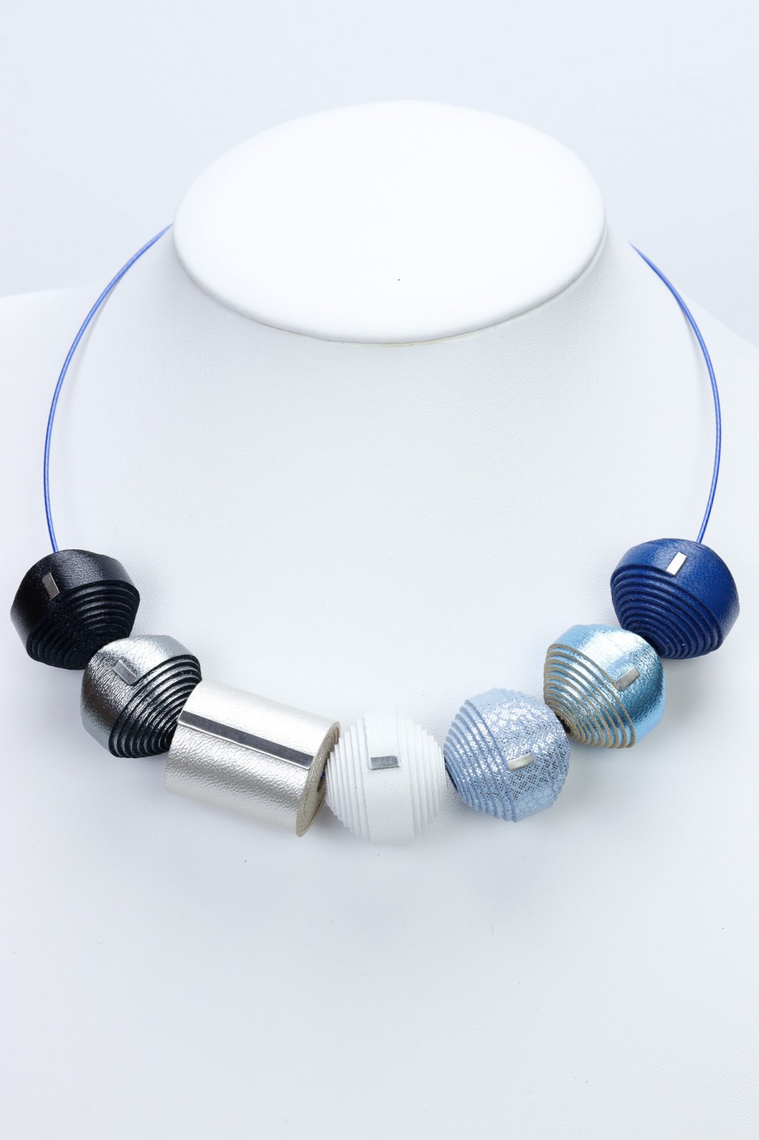"Colier din piele lucrat manualConcept unic mix-and-match: bila metalică de la capătul bazei din oțel inoxidabil se deșurubează și poți adăuga bonboane de la alt colier, le poți scoate sau amesteca, astfel încât să poți avea un colier nou asortat oricărei ținute.Cutia premium conține 7 mărgele leatherbonbon care pot fi aranjate în combinații de la 3 la 7 mărgele, în funcție de dispoziție și stilul vestimentar.Diametru bază colier: aproximativ 14 cmConținut cutie: