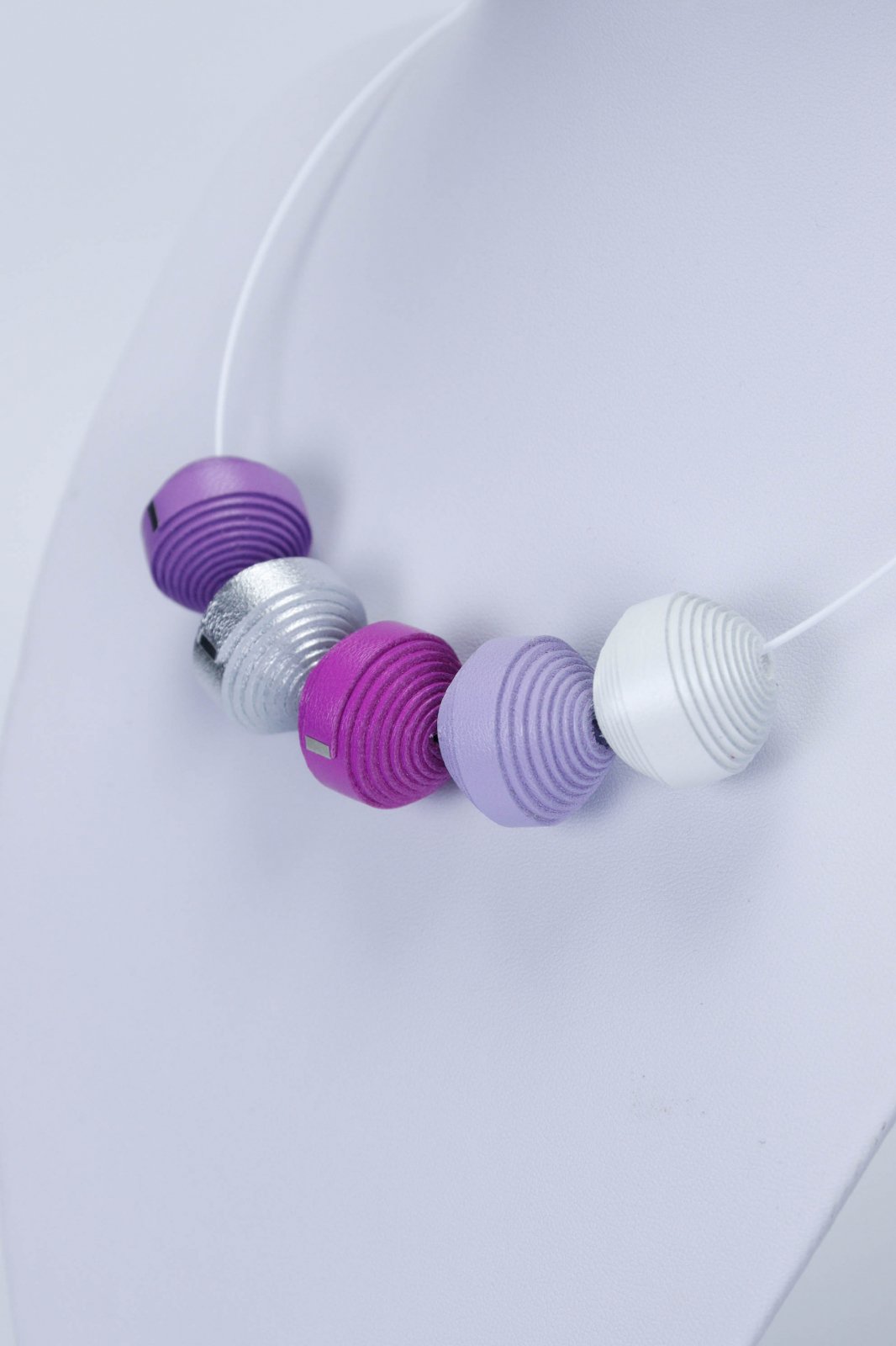 "Experimentează un stil coordonat și personalizabil cu acest set de colier și cercei din piele lucrați manual. Colierul prezintă conceptul unic mix-and-match: pur și simplu deșurubează capătul bazei pentru a adăuga, scoate sau rearanja „bonboanele” din piele naturală pentru a crea un look nou pentru orice ținută. Setul include cinci mărgele frumoase din piele, o bază flexibilă din sârmă siliconică și o pereche de cercei din piele lucrați manual, perfect asortați, totul fiind prezentat într-o cutie elegantă de cadou.Caracteristici: