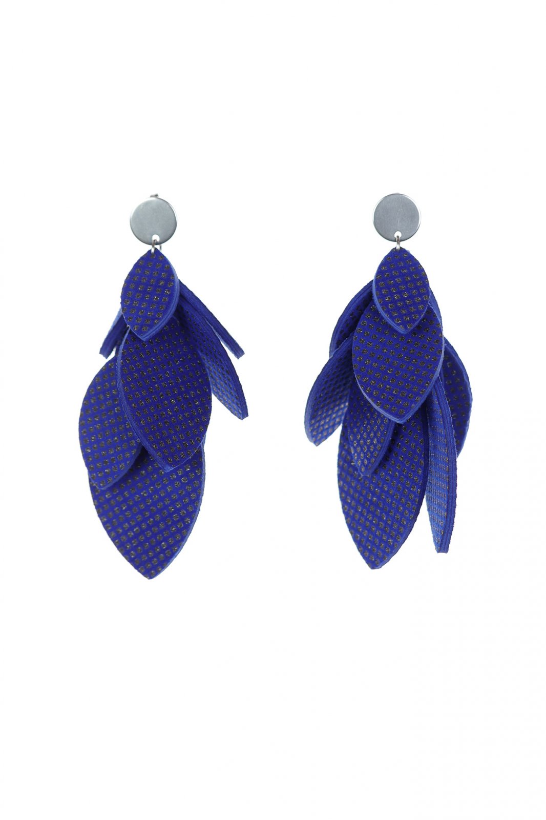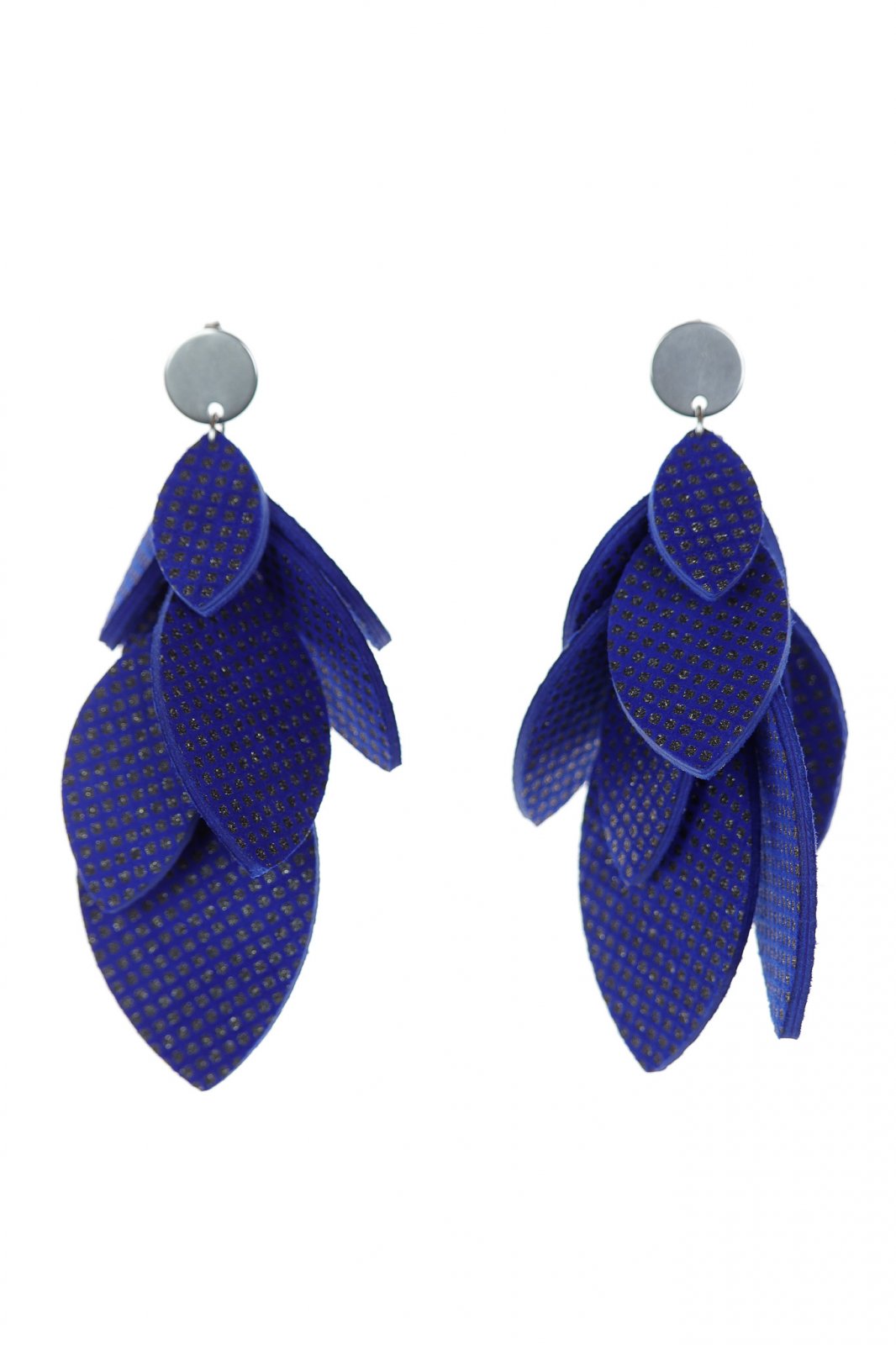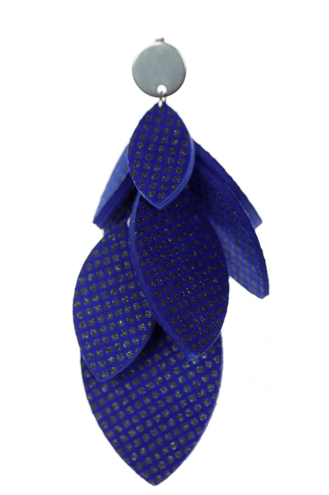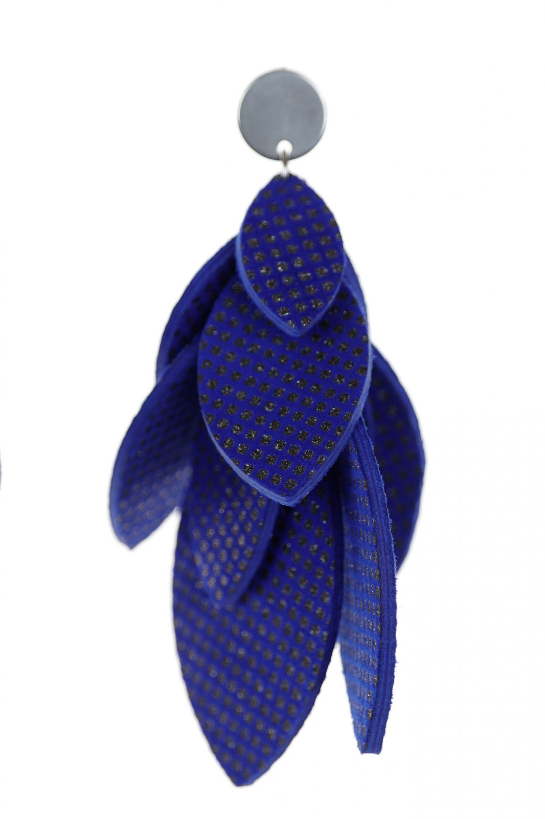 Stil Electrizant. O cascadă de petale din piele lucrate manual într-o nuanță îndrăzneață de albastru electric. Acești cercei statement de 9 cm cu textură în relief sunt un accesoriu modern și original pentru un look dinamic.