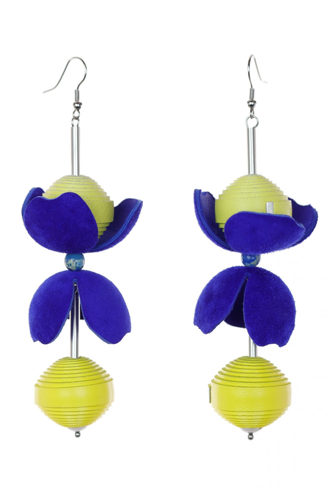 Cercei din piele - Albastru + Galben