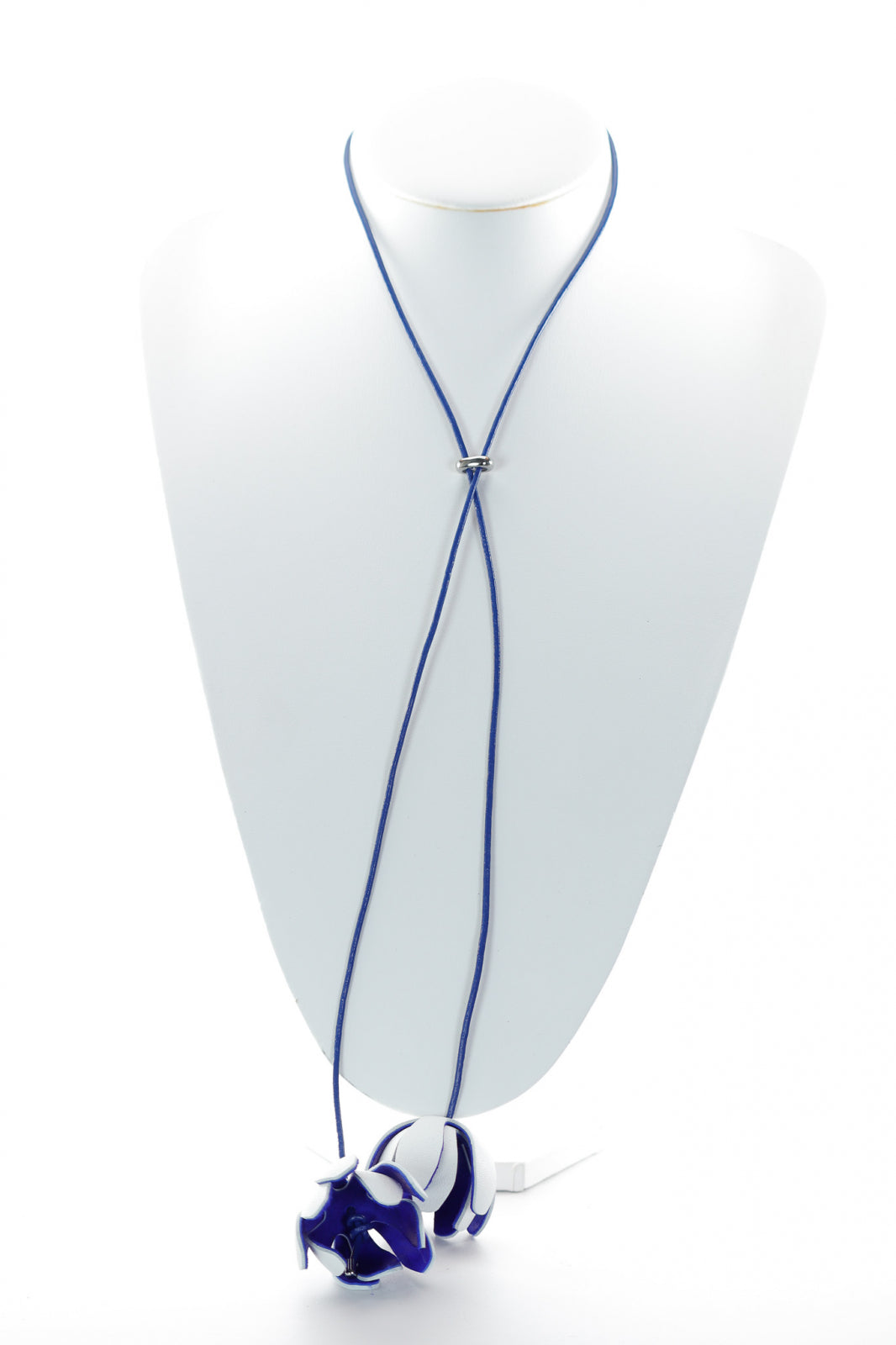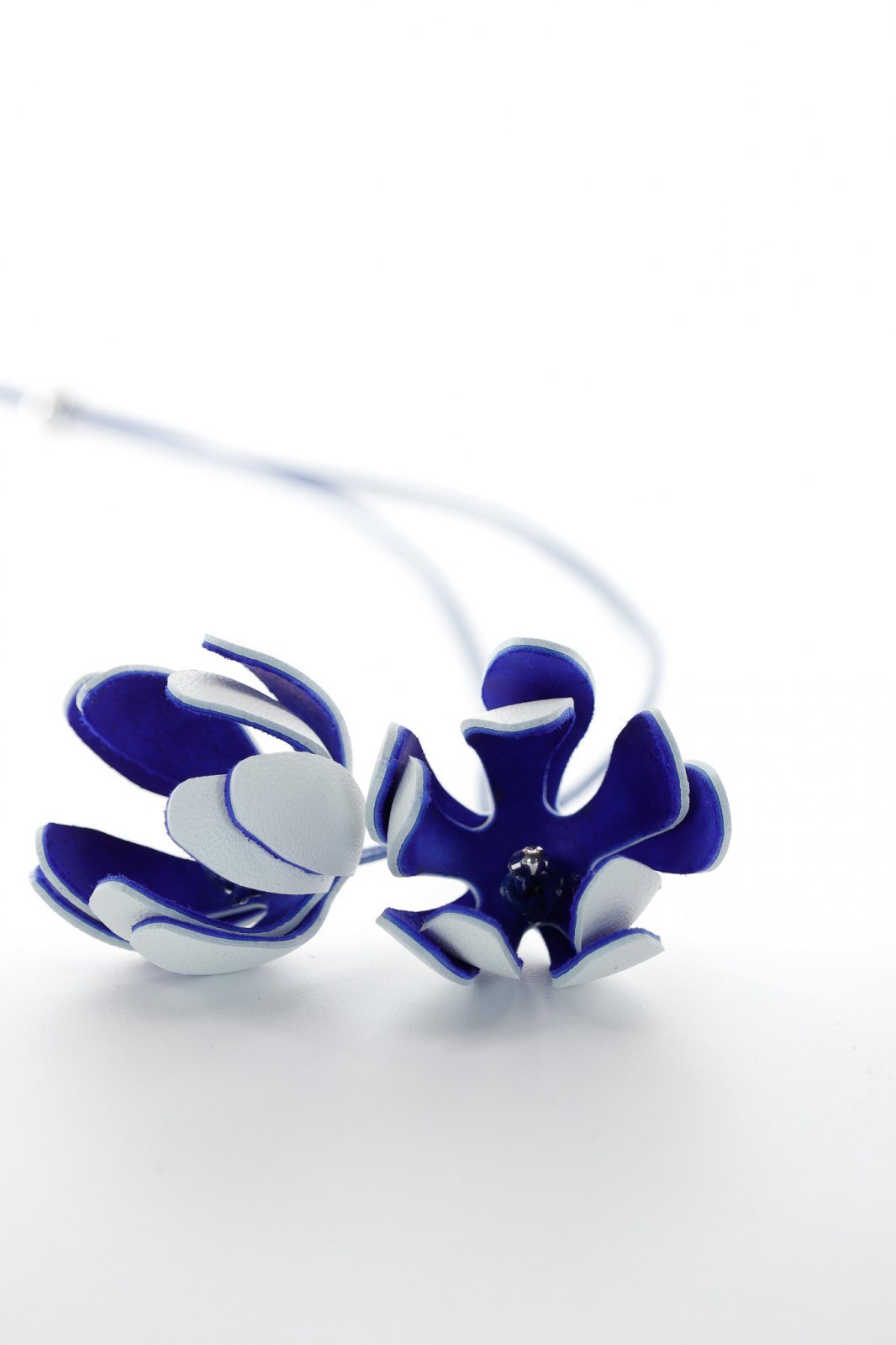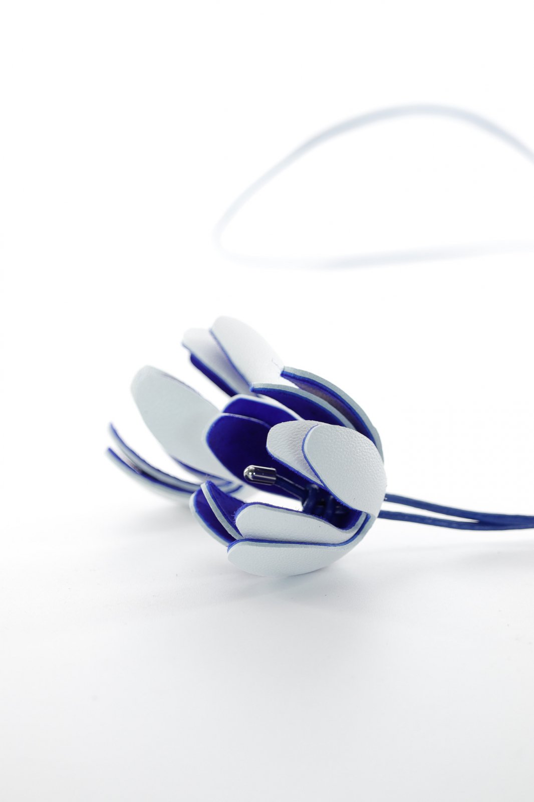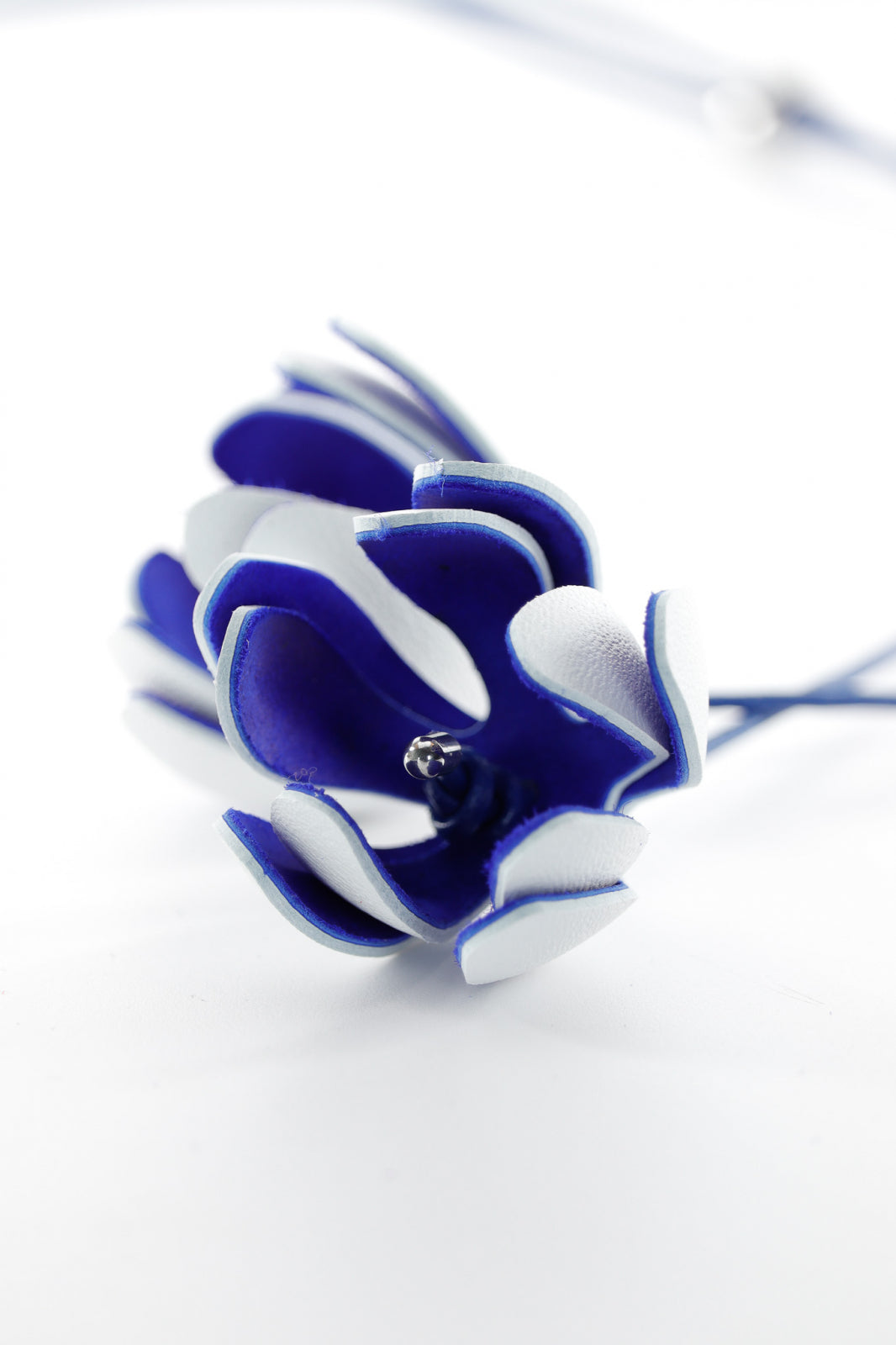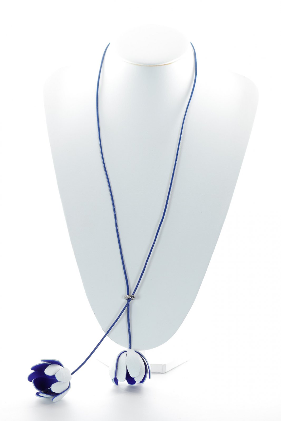 Colier floral reglabil - Alb + Albastru royal