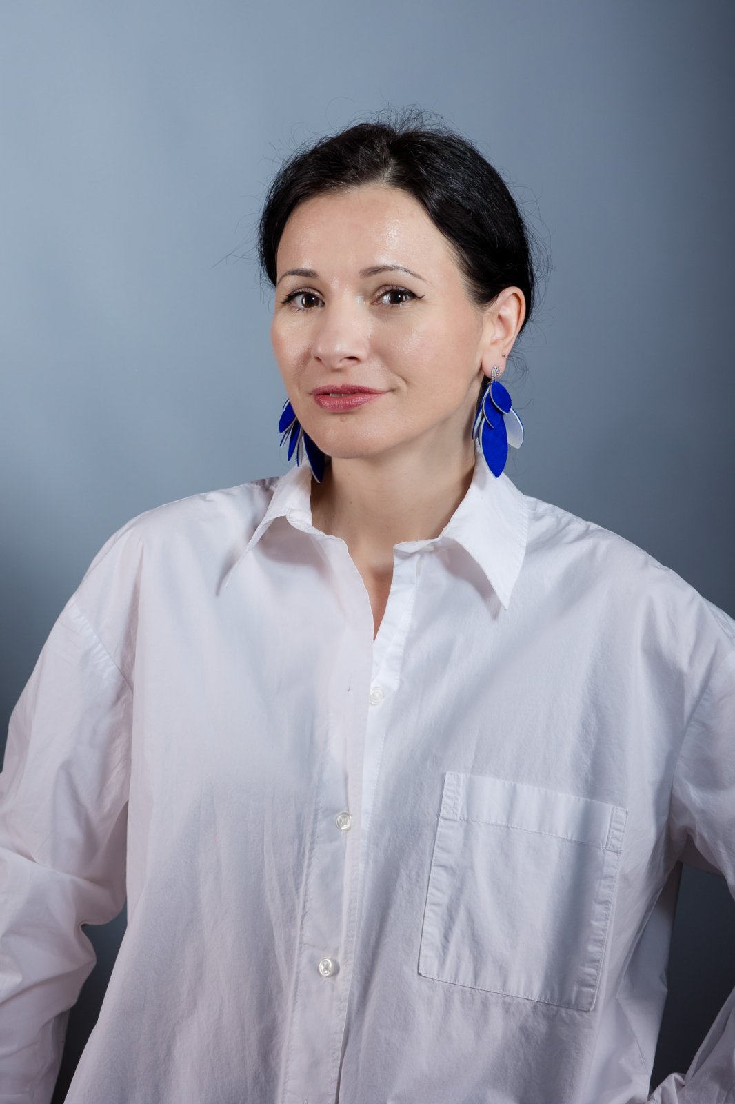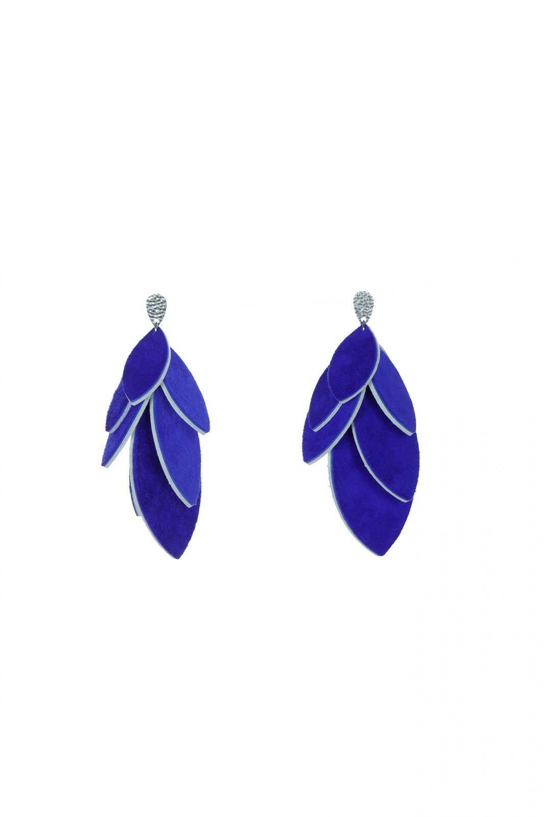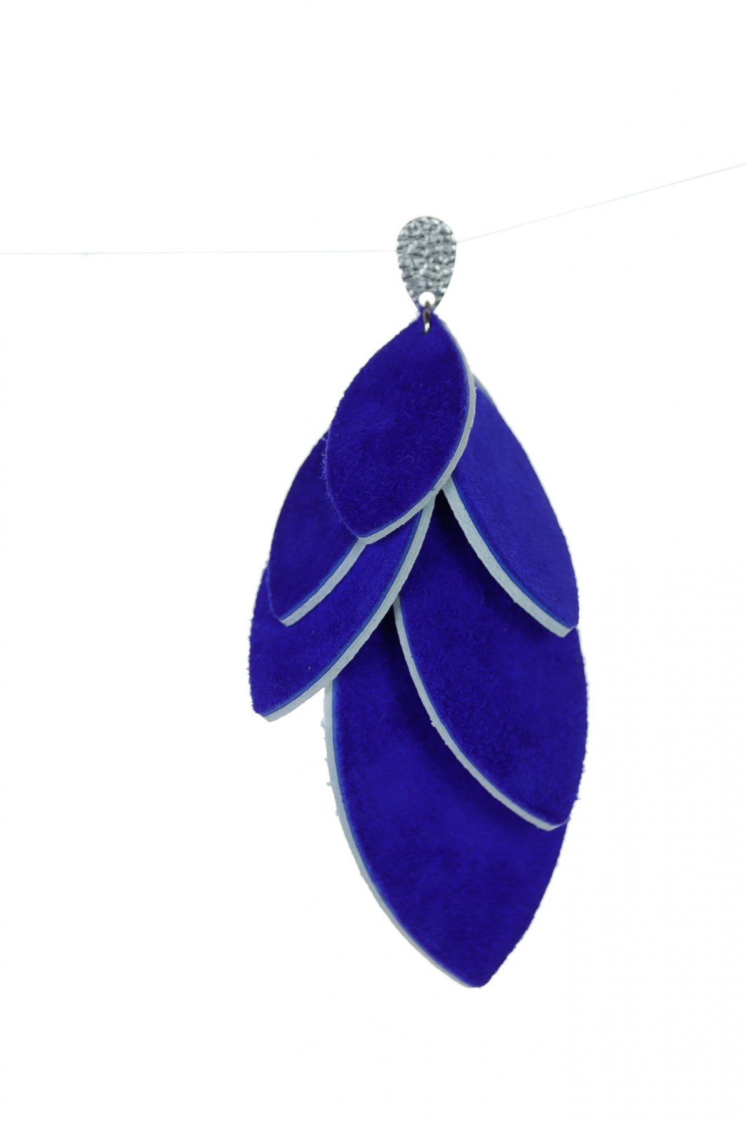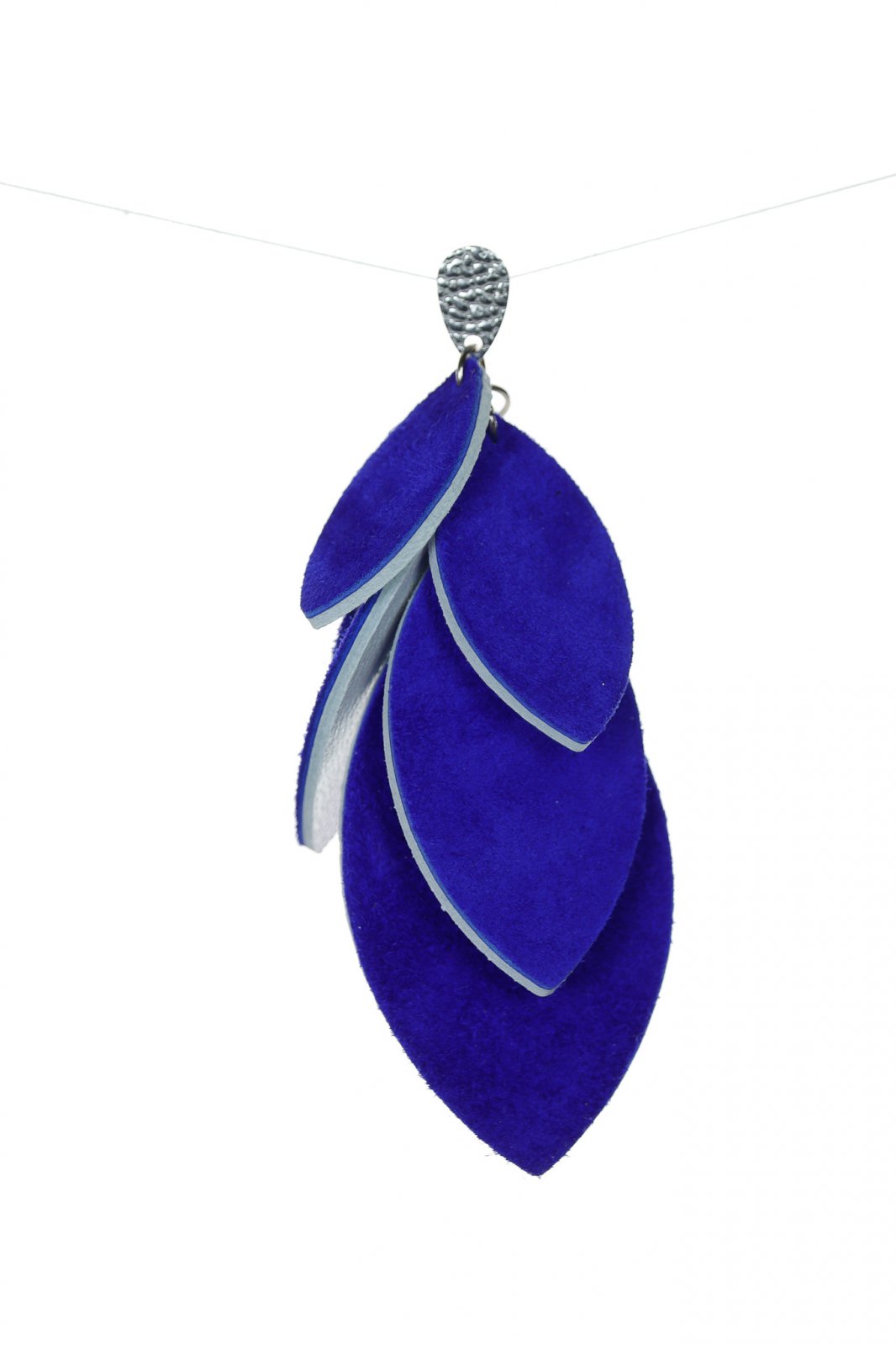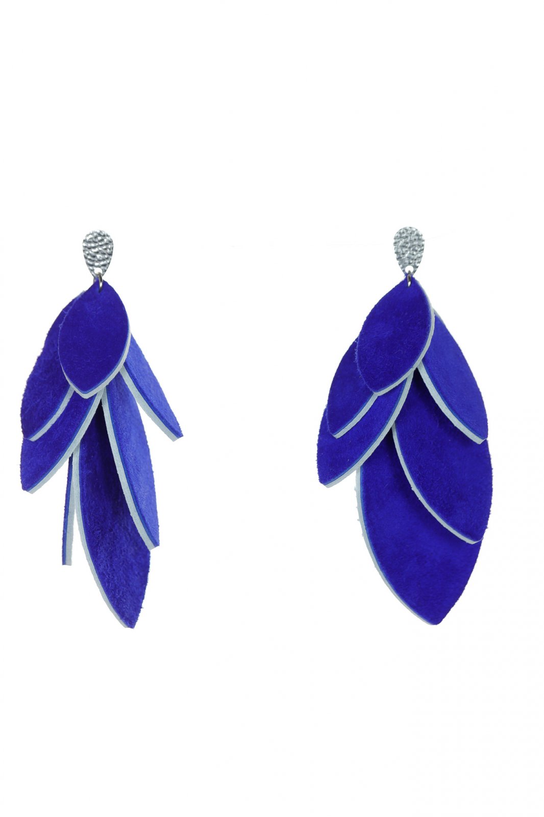 Versatil & Dramatic. O cascadă uimitoare de petale din piele lucrate manual, cu un design inteligent reversibil în alb clasic și albastru regal intens. O piesă statement sofisticată și dinamică de 7 cm.