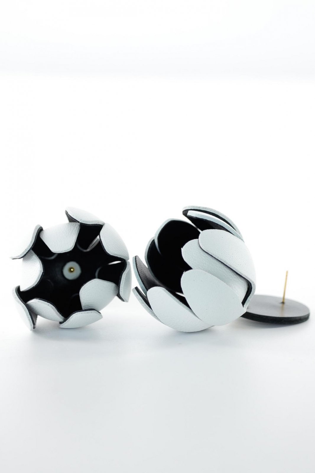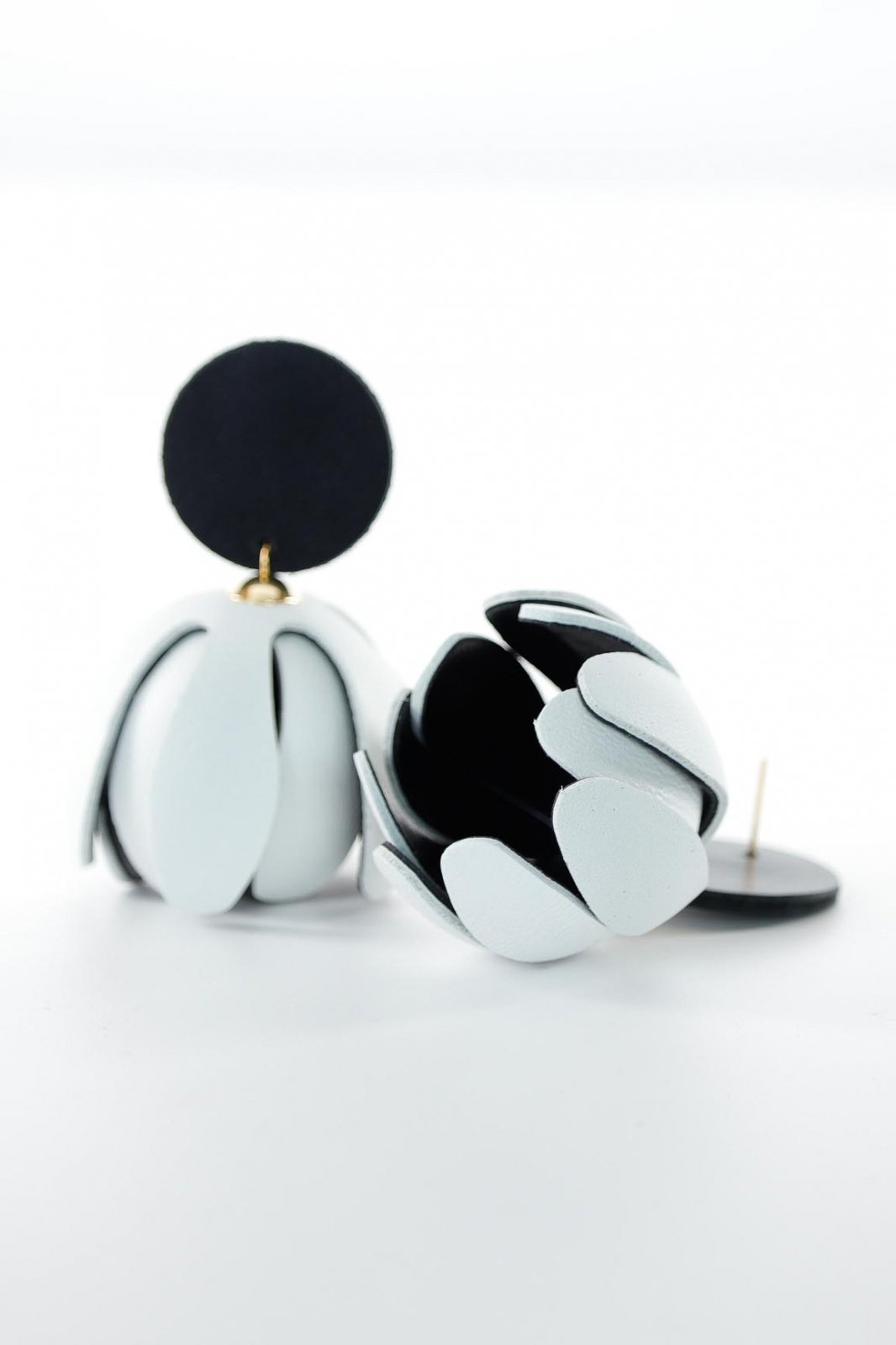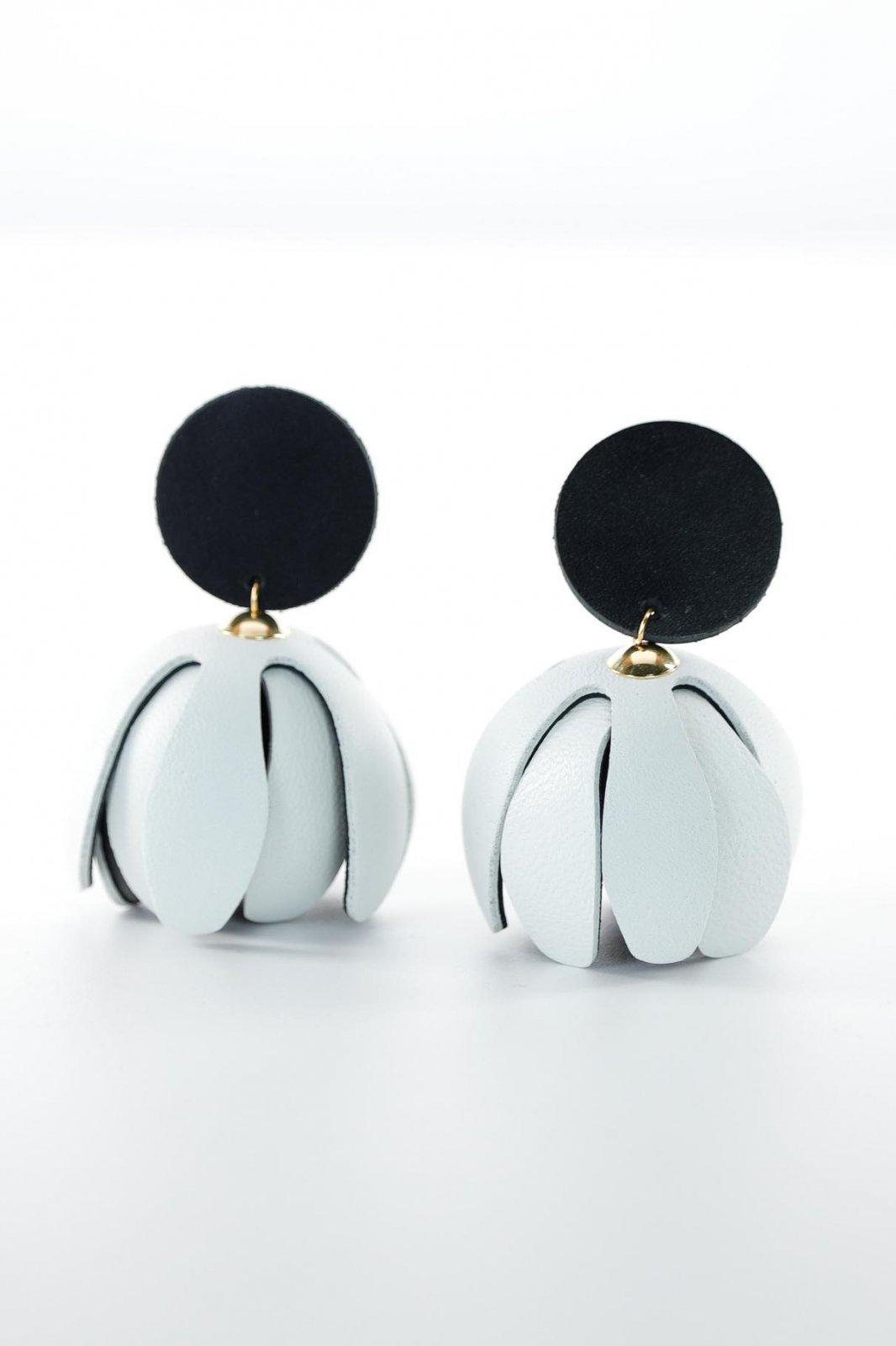Cercei model floral din piele - Alb + Negru