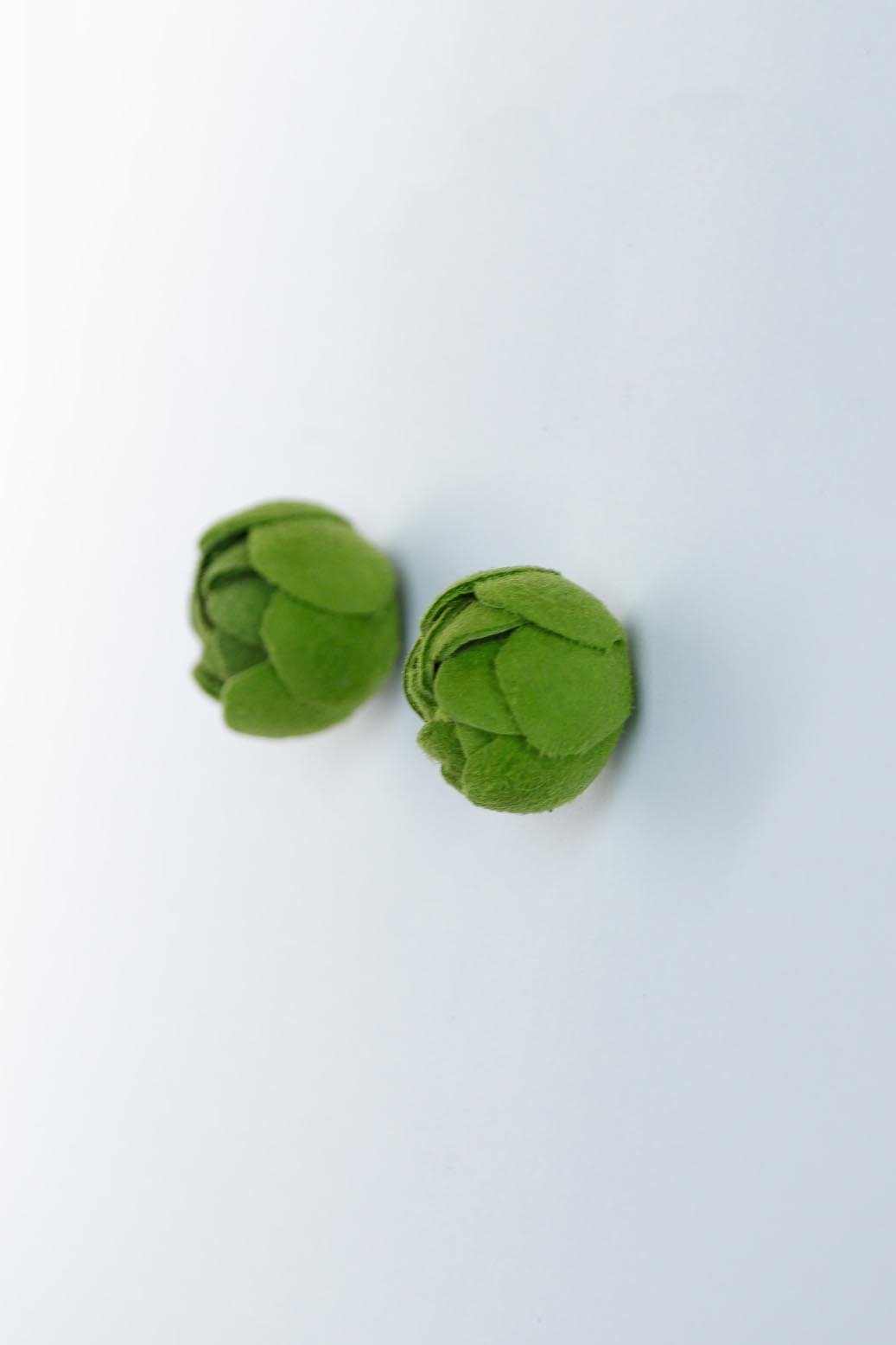 Trandafir Zesty. Un trandafir 3D vibrant, lucrat manual din piele, într-un verde lime energic. Acești cercei stud de 2 cm sunt un accesoriu proaspăt și modern pentru o pată de eleganță jucăușă.